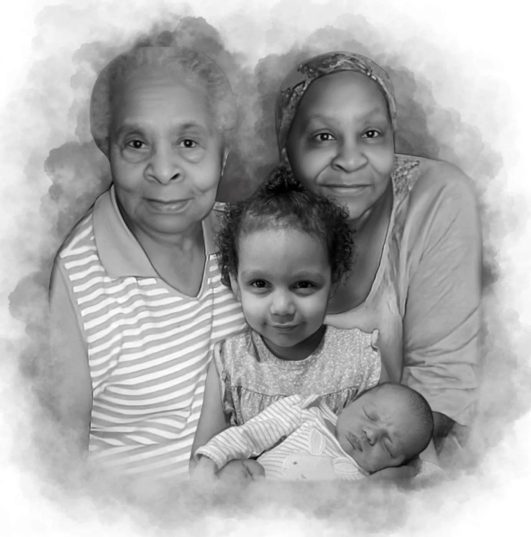 Julia made a beautiful portrait of my Grandma who passed away and my son. It is my favorite piece of work I’ve ever received! Not only is the portrait beautiful, Julia was very quick to respond and attentive to my requests. 10/10! - Alexa L.
